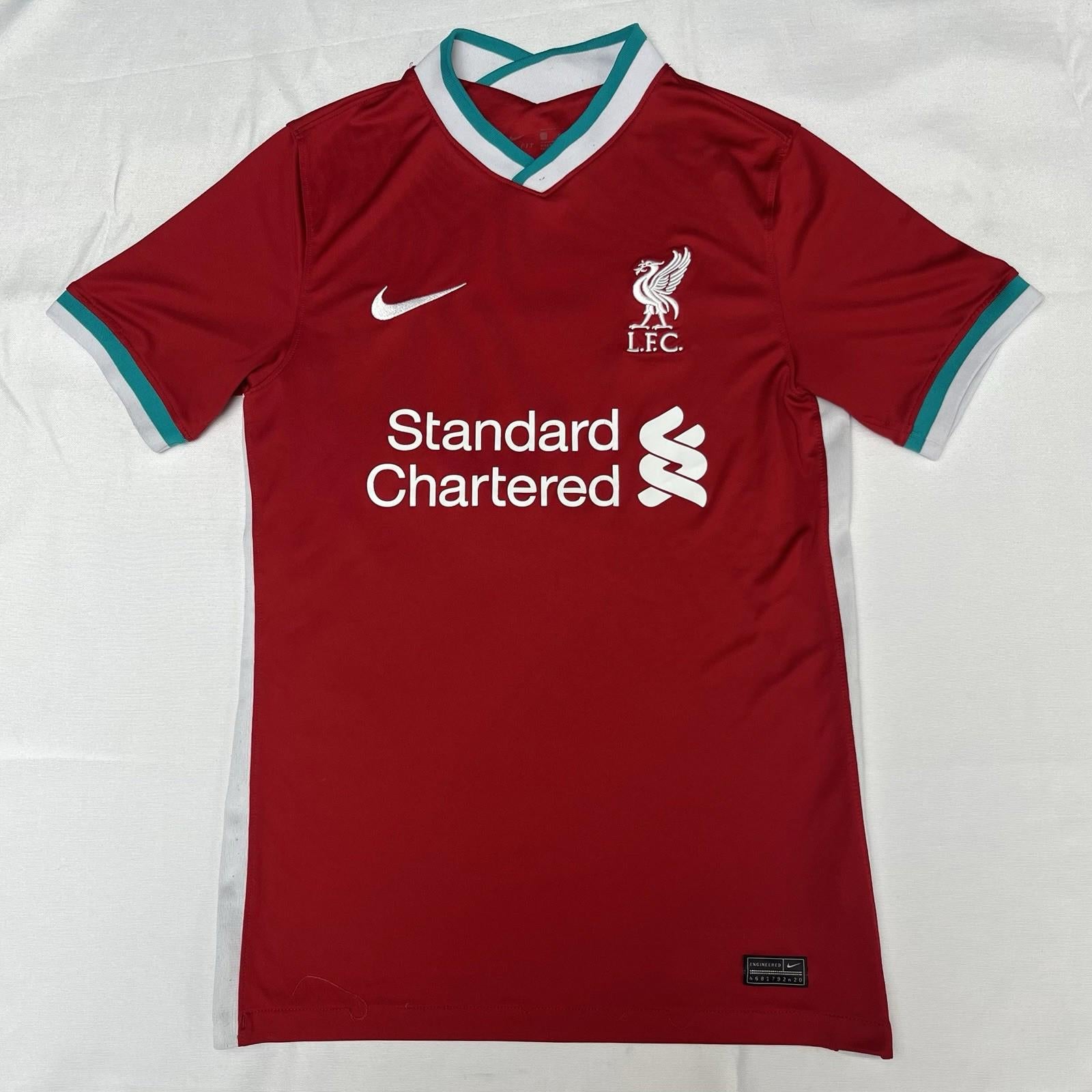 Official 2020/21 Liverpool Home Shirt by Nike — debut of the Nike era. Classic red design with teal and white trim.